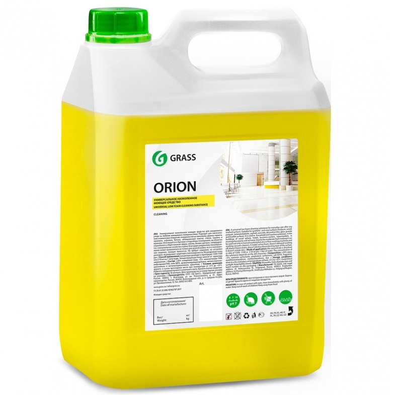 Концентрированное средство «Orion» применяется удаления загрязнений с любых поверхностей в различных условиях. Используется для мытья синтетических и виниловых покрытий, поверхностей из линолеума, дерева, паркета, ламината, асфальта, бетона, облицовочной плитки, стекла, гранита и мрамора. Не требует смывания, не оставляет разводов, не разрушает защитный слой поверхности. Благодаря умеренному пенообразованию может применяться в поломоечных машинах и моющих пылесосах. Объём: 5л