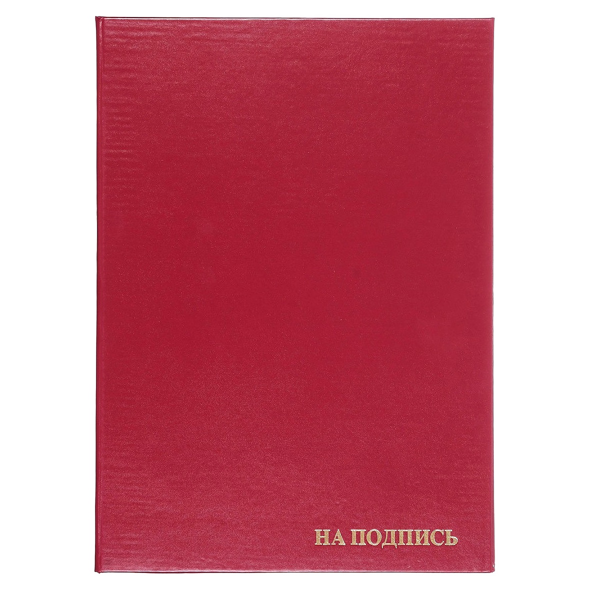 Папка адресная (для документов, грамот, дипломов, и др.), фальгированная надпись «на подпись». Изготовлена из плотного картона с бумвиниловым покрытием. Без орнамента и тиснения. Формат: А4. Цвета: красный