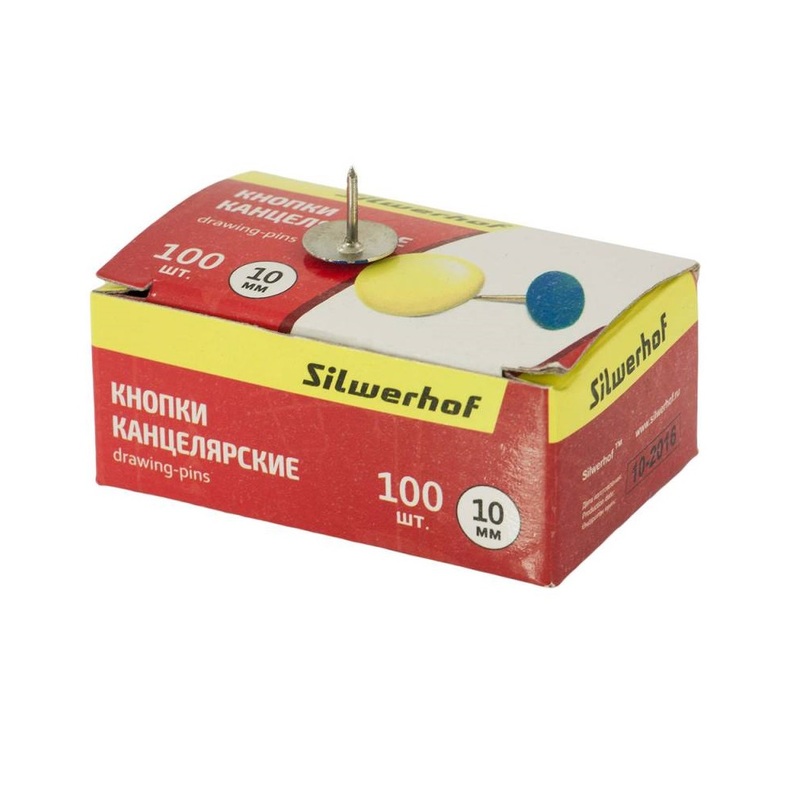 Кнопки силовые, канцелярские, металлические. Предназначены для крепления бумаги и картона к поверхностям из мягких пород дерева. Размер 10мм; в упаковке 100 шт.