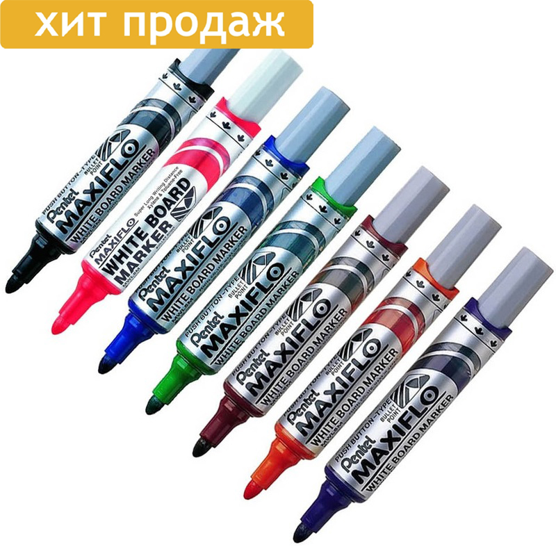 Набор маркеров "Maxiflo" с магнитной щеткой. Жидкие чернила и кнопка подкачки чернил предотвращают высыхание чернил и обеспечивают рекордную длину письма (используются в 4 раза дольше обычных маркеров!). В пачке 4 штуки. Цвета: ассорти