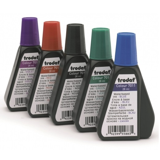 Штемпельная краска 28мл повышенного качества от австрийского производителя печатей и штампов Trodat. Не содержит масла. Подходит для использования всех видов штемпельных подушек и металлических печатей. Цвета: синий, фиолетовый, зеленый, красный, черный