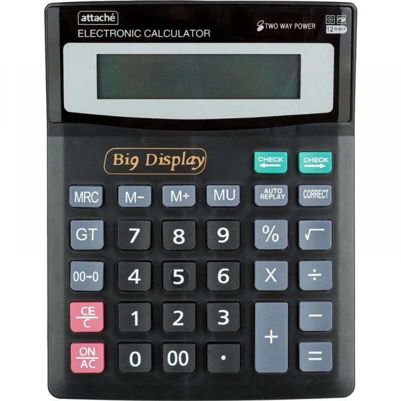 Калькулятор Attache настольный в пластиковом корпусе с 12-разрядным ЖК-дисплеем. Имеет оптимальный набор вычислительных функций: основные математические операции, расчет процентов, извлечение квадратного корня, запоминание промежуточных результатов. Удобная клавиатура снабжена кнопкой ввода двойного нуля. В калькуляторе имеется два источника питания: солнечная батарея и батарейка AA. Размер: 192 х 148 х 33 мм. Тип клавиатуры: пластик. Наличие металлической панели: нет. Вес 200 г. Обращаем внимание, что батарейка не входит в комплектацию данного калькулятора. |