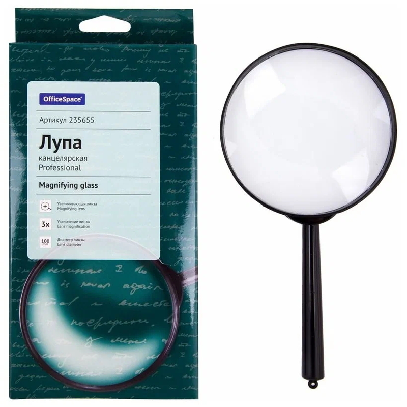 Лупа офисная, материал: стекло. Увеличение в 3 раза. Пластиковая основа. Диаметр: 100мм