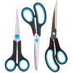 Остроконечные канцелярские ножницы 17.1, 24 см. Лезвия из нержавеющей стали, прорезиненные ручки. Упаковка: чехол с европодвесом