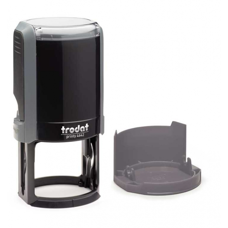 Пластиковая автоматическая оснастка для круглой печати "Trodat 4642" диаметром 42мм. Наиболее популярная модель круглой печати. Размер оттиска 400мм. Оснащена защитной фиксируемой крышкой. Сменная подушка. Цвета корпуса в ассортименте.