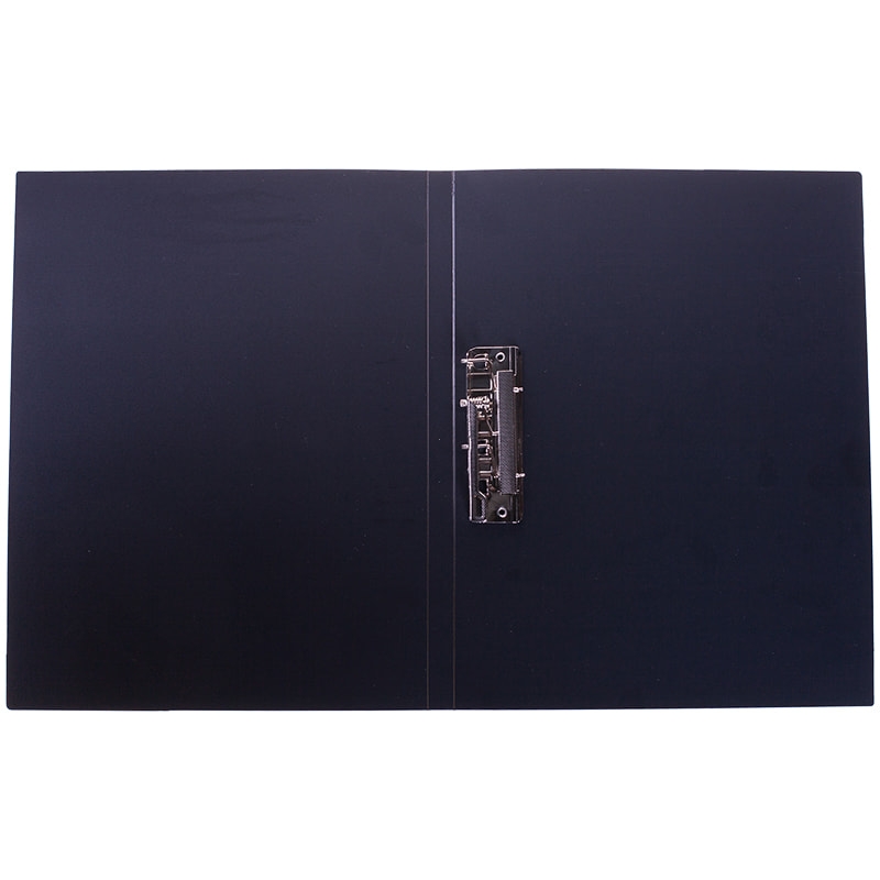 Папка формата А4 из пластика плотностью 450мкм. Боковой металлический зажим надежно фиксирует листы, не требуя их перфорации дыроколом. Ширина корешка 21мм, вместимость до 170 листов. Цвет: черный