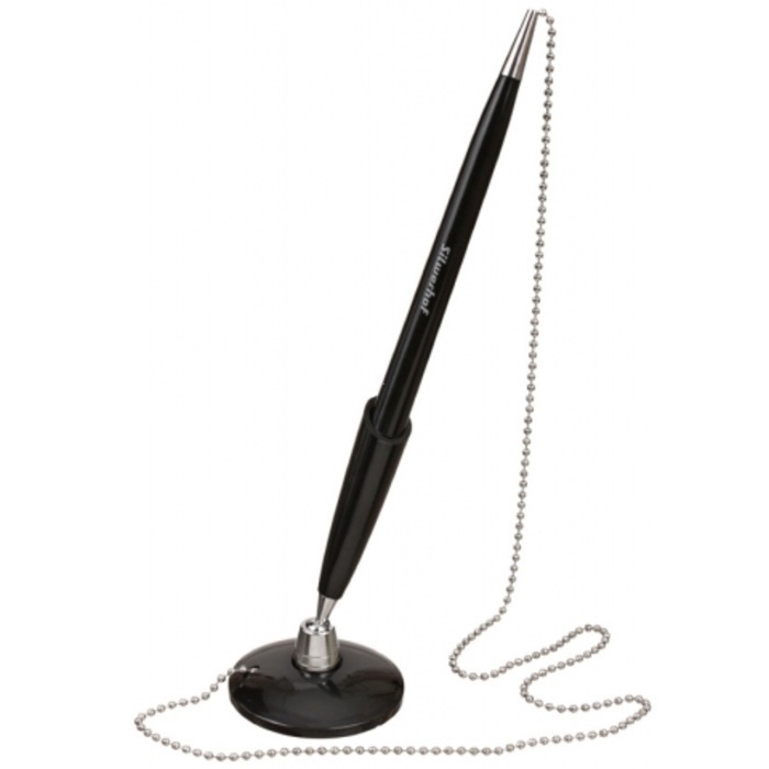 Ручка на подставке "Silwerhof" на металлической цепочке. Липкий слой для приклеивания к любой поверхности. Толщина письма: 0,7мм. Цвет стержня: синий
