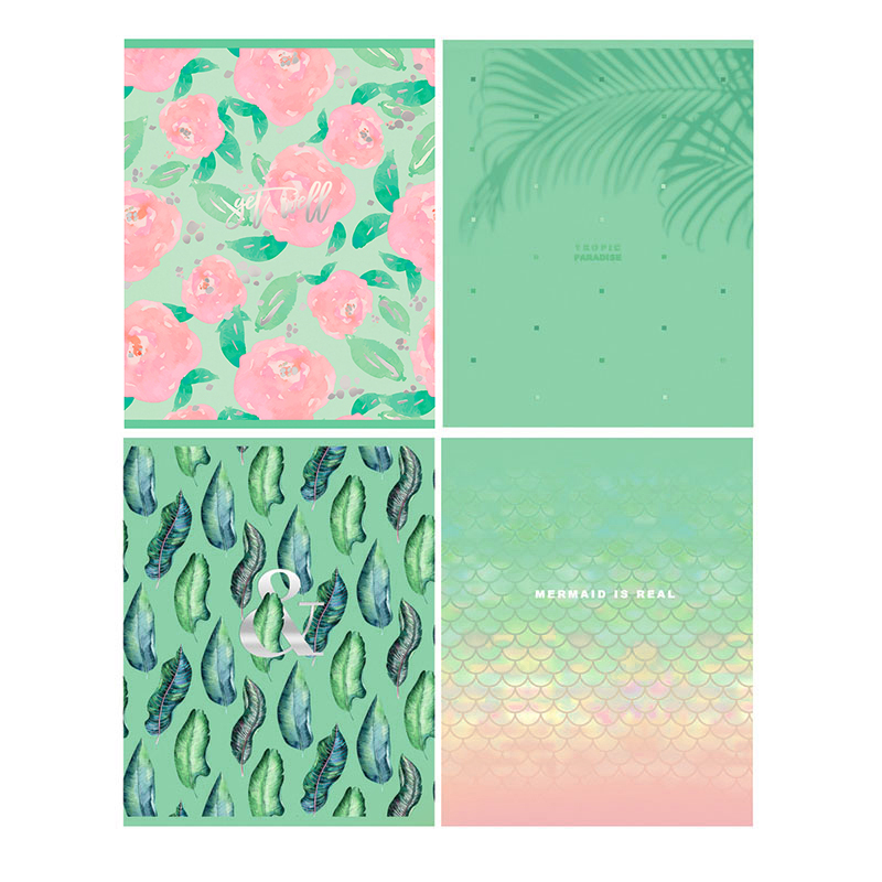 Тетрадь А5 полуобщая на скрепке (скобе), 48 листов, линейка. Тиснение голографической фольгой, форзац с дизайном